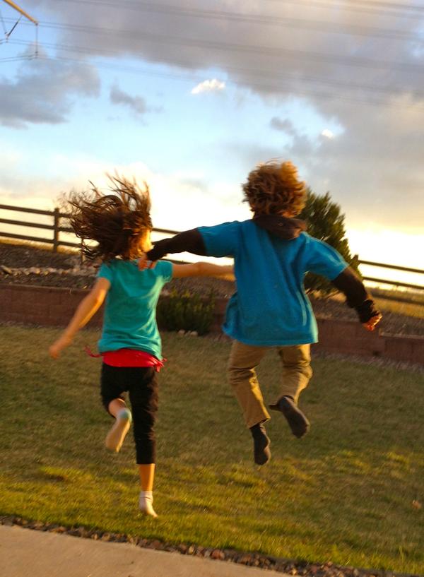 This image was taken last night as the sun was setting. The kids were jumping off the porch into the grass as the celebration of a beautiful day and cap to their weekend.